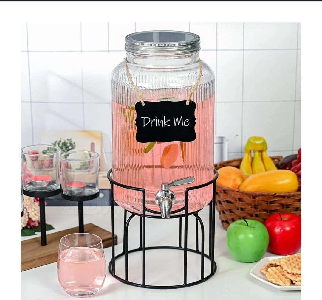 5.5 Ltrs Glass Beverage Dispenser With Metallic Stand